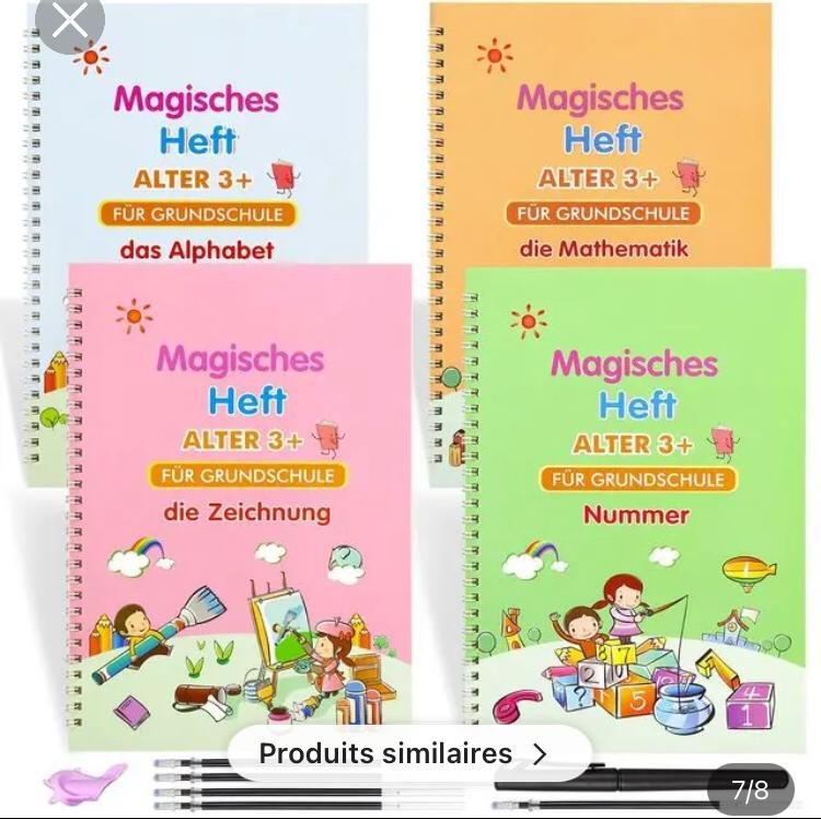 Français avec Rainures Premium (Cursive/ Dessins/ Alphabet/ Numéros) +2 Stylos