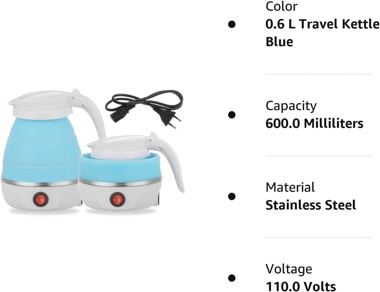 voyage pliable a une puissance effective de 600 W, la bouilloire peut résister