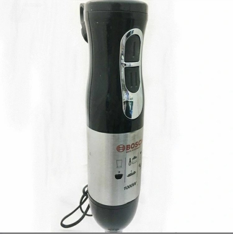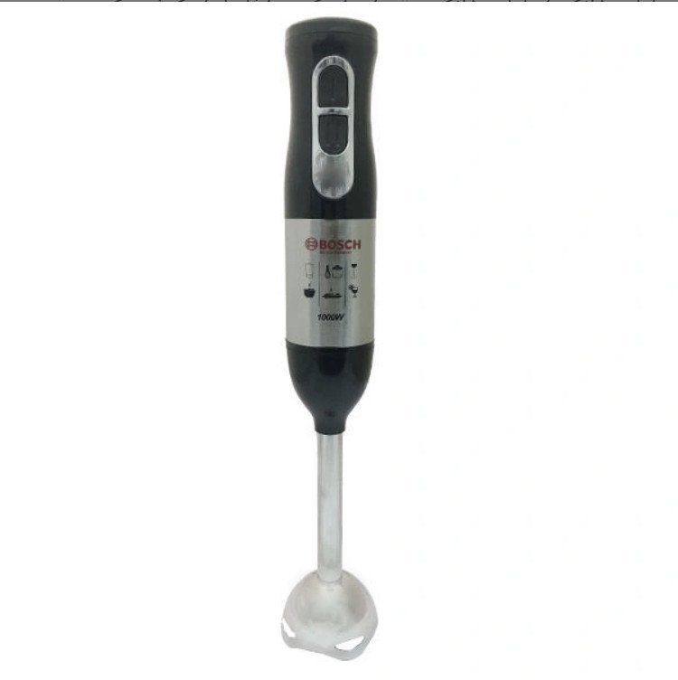 Mixeur plongeant avec 1000 W de puissance maximale, parfait pour obtenir des mélanges fins et homogènes rapidement et en toute simplicité. Technologie BOSCH : lame avec 4 feuilles revêtues en titane noir, ce qui augmente leur dureté et leur affûtage pour broyer jusqu’aux aliments les plus durs, obtenant ainsi des consistances douces et uniformes