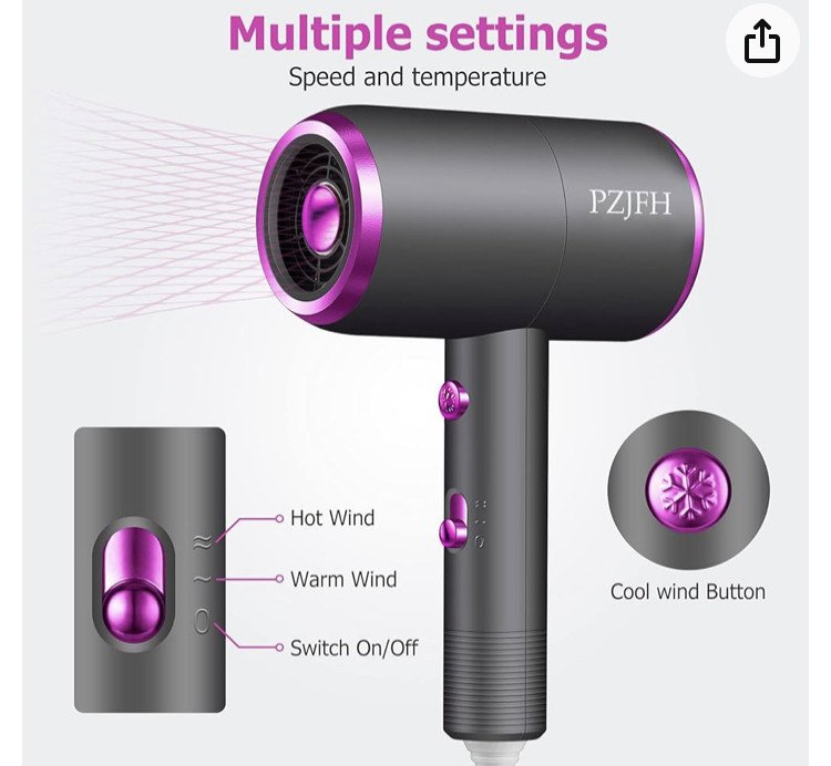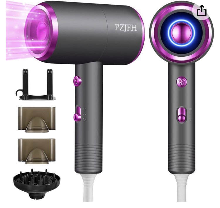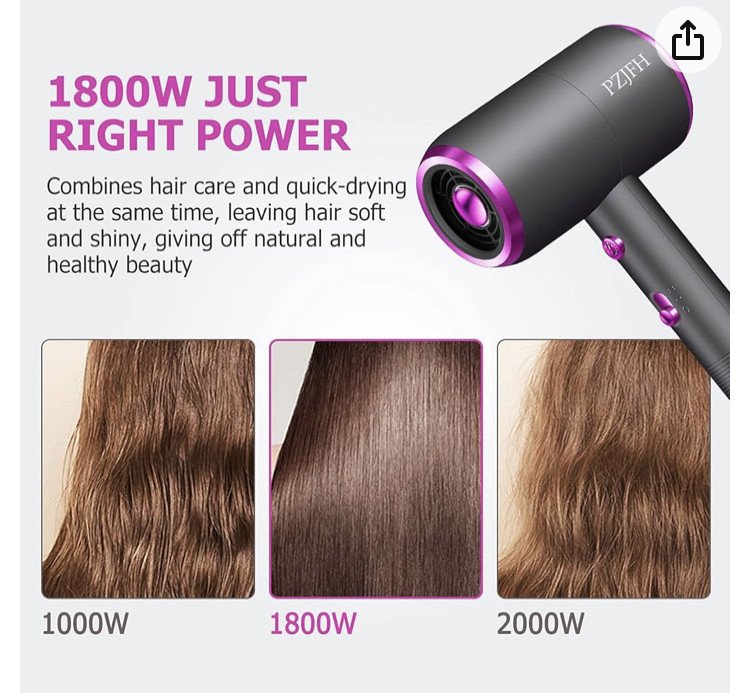 【1800W Puissant】Sèche-cheveux ionique négatif PZJFH avec conception de port de collecte du vent, puissance éolienne augmentée d'un tiers, avec moteur en cuivre pur à courant continu, puissance élevée, faible rayonnement pour un séchage et un coiffage rapides et efficaces,fixe les cheveux épais et bouclés en 5 minutes. 2 vitesses, 2 réglages de chauffage et un bouton du froid indépendant, vous offrent plus de choix