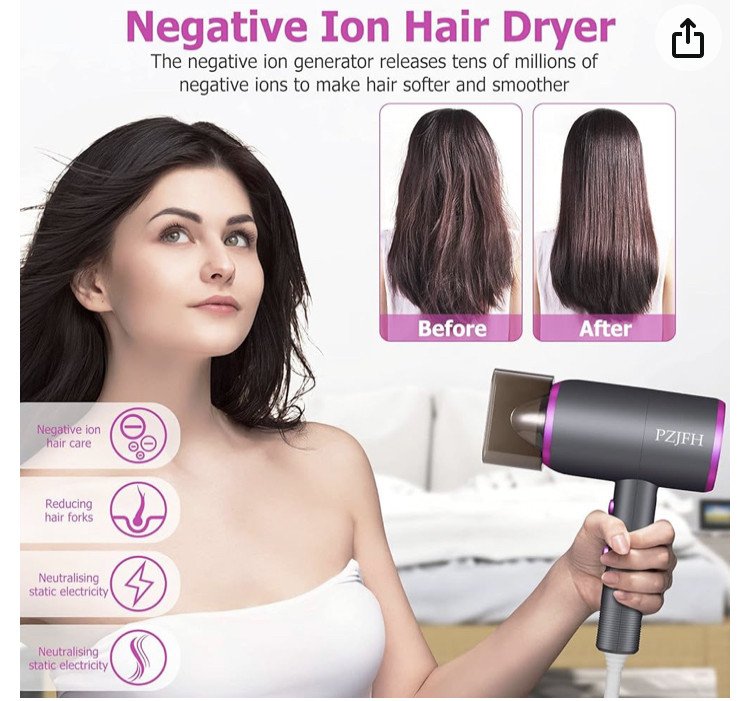【Choix de cadeau idéal】: La belle apparence et le poids léger du sèche-cheveux ionique en font un cadeau parfait pour la famille ou les amis, adapté pour un salon professionnel et un usage domestique, mais également très adapté pour les voyages. (Veuillez ne pas toucher la buse d'air pendant l'utilisation pour éviter les brûlures)
